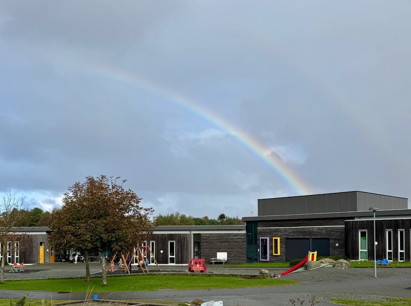 Flotte barnehagebygg i nærleik av skular, idrettshall og flott natur.